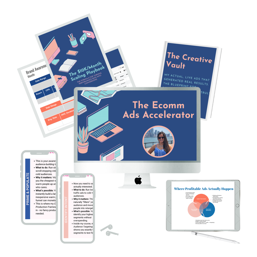 Implement the exact ad strategy I’ve refined over 13+ years and $2M+ in ad spend helping e-commerce brands turn paid ads into a predictable revenue driver.