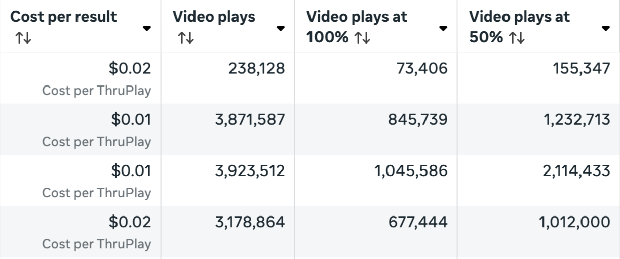 Check out how many video viewers these 4 ongoing video ads have gotten!